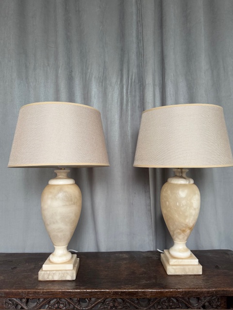 Prachtige oude albast tafellampen, loeizwaar!