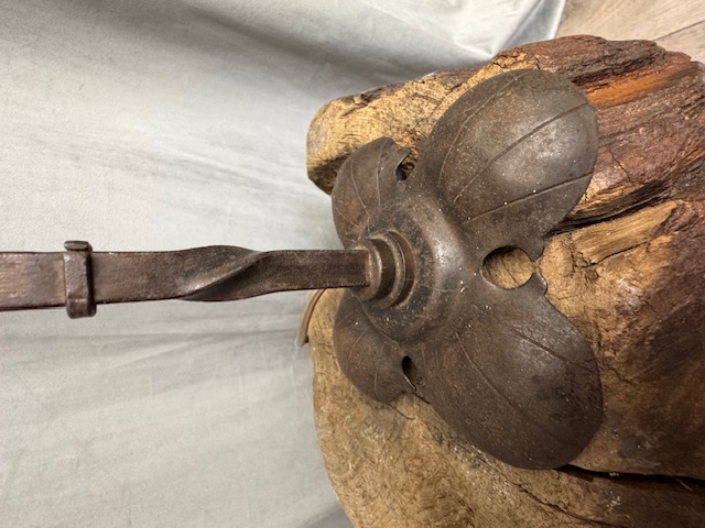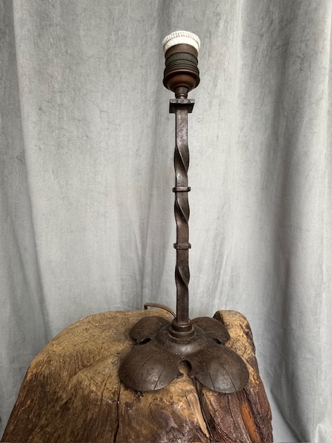 Mooi antiek handgesmeed tafellamp in de Arts & Crafts style.