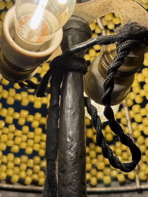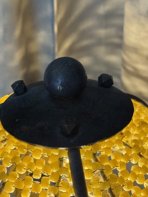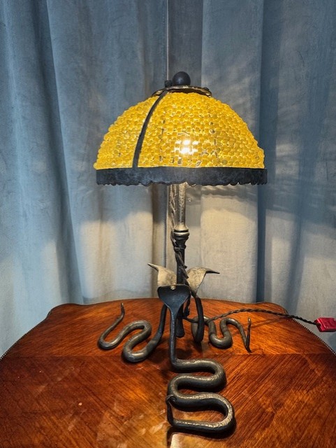 Prachtig smeedwerk in de vorm van cobra slangen en een kap van ontelbare glazen kraaltjes.