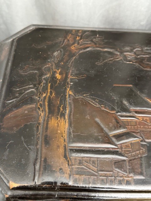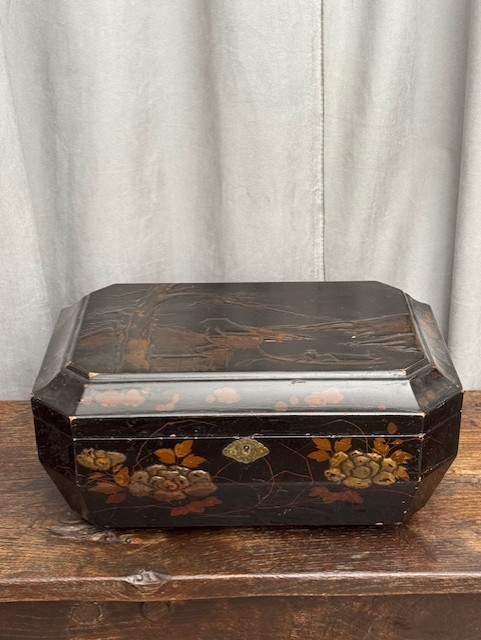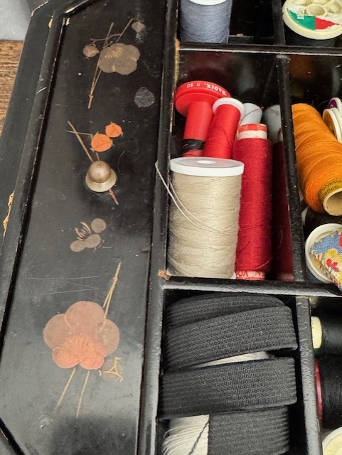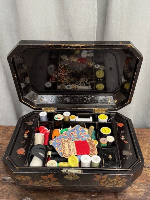 Mooie Chinese lakwerk naaidoos (met inhoud).