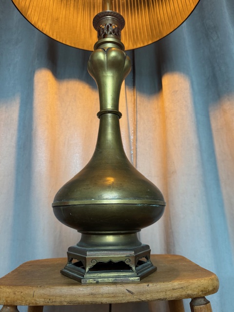 Prachtige antieke bronzen Jugendstil tafellamp met oosterse invloeden.