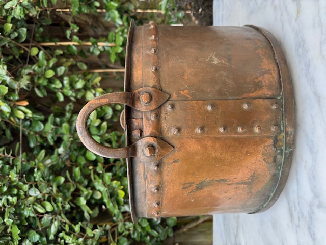 Zeer fraaie antiek roodkoperen haardbak / aker.