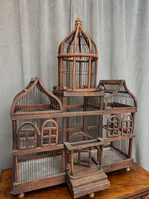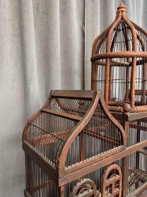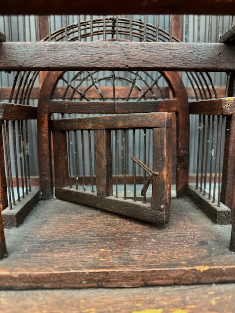 Prachtige antieke Victoriaanse vogelkooi welke is uitgevoerd in hout en metaal.