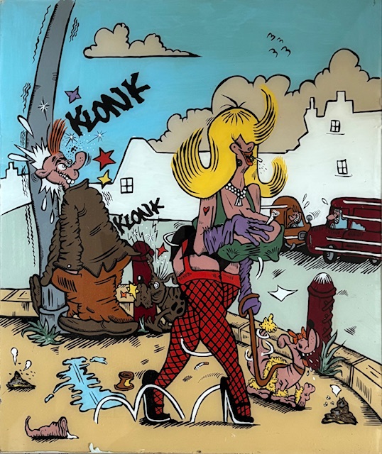 Betreft een origineel reclame bord van Joop Klepzeiker door Eric Schreurs.