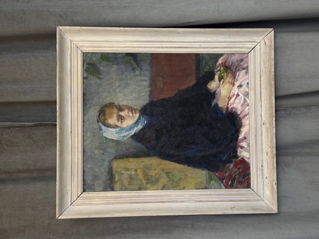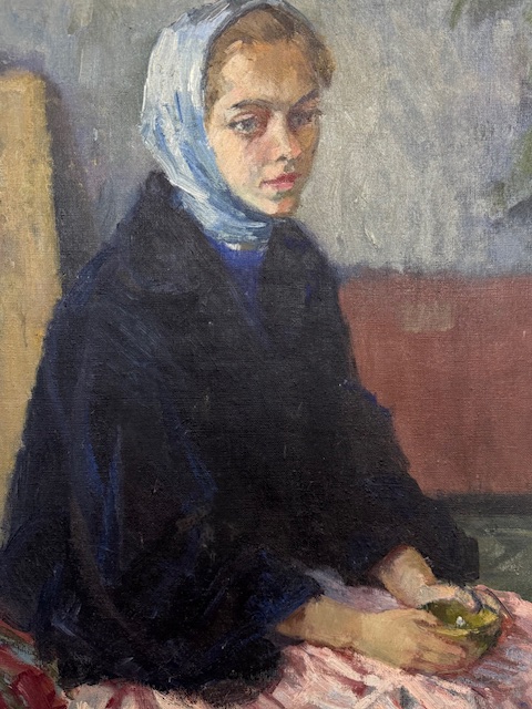 Oud schilderij van een introvert / verlegen vrouwelijk persoon.