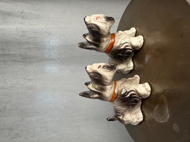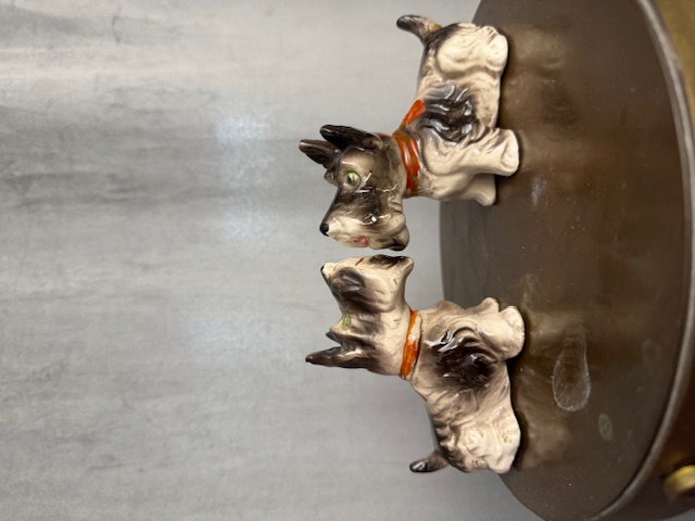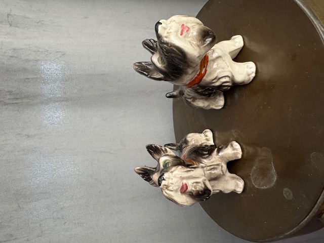 Oude aardewerk hondjes zogenaamde scottie / whiskey hondjes.