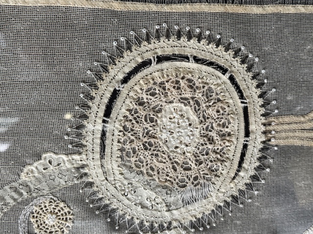 Zeer fraai vintage kunstwerk van textiel. Kijk eens aandachtig naar de foto's en ontdek de complexiteit van dit kunstwerk.