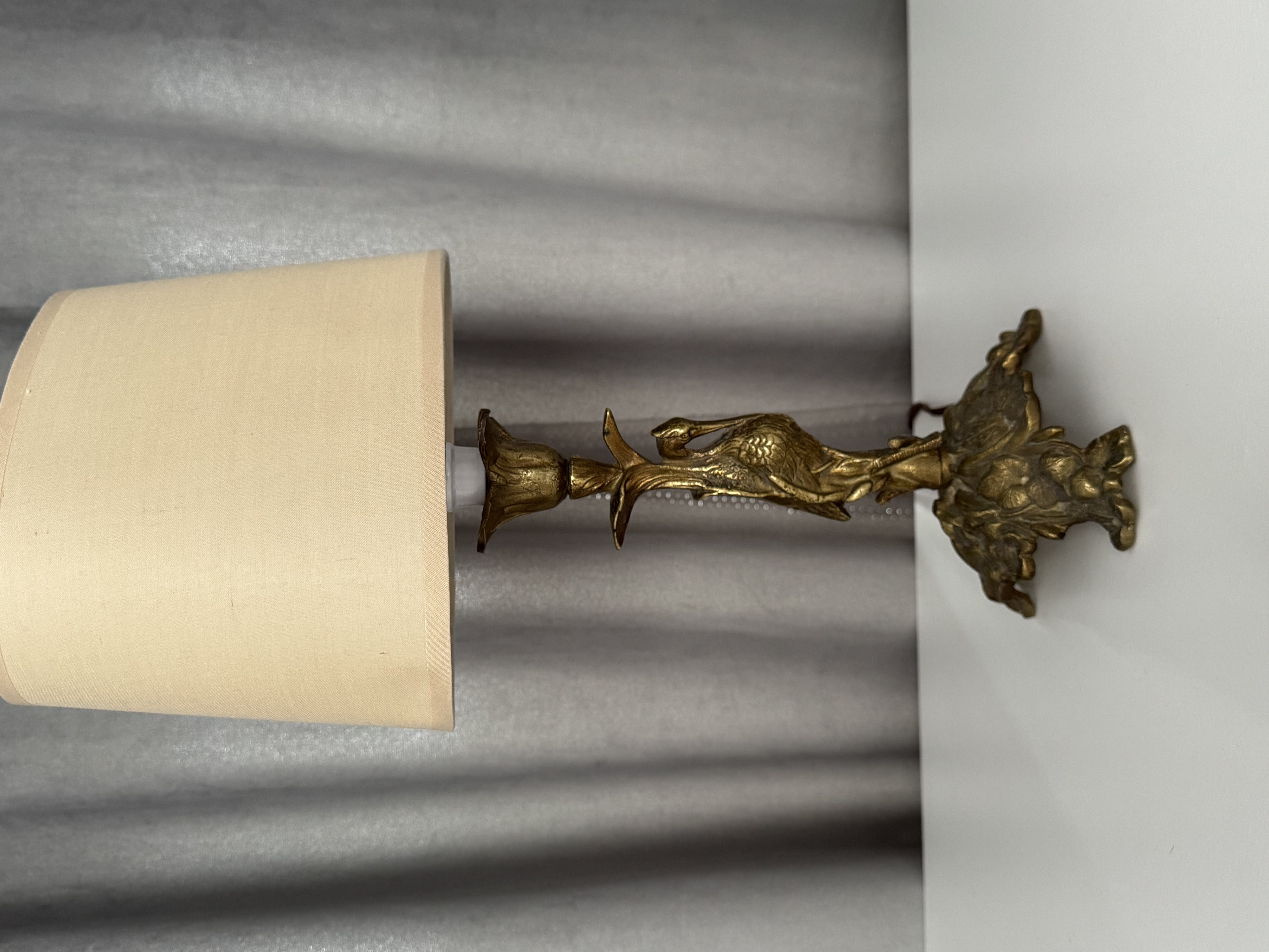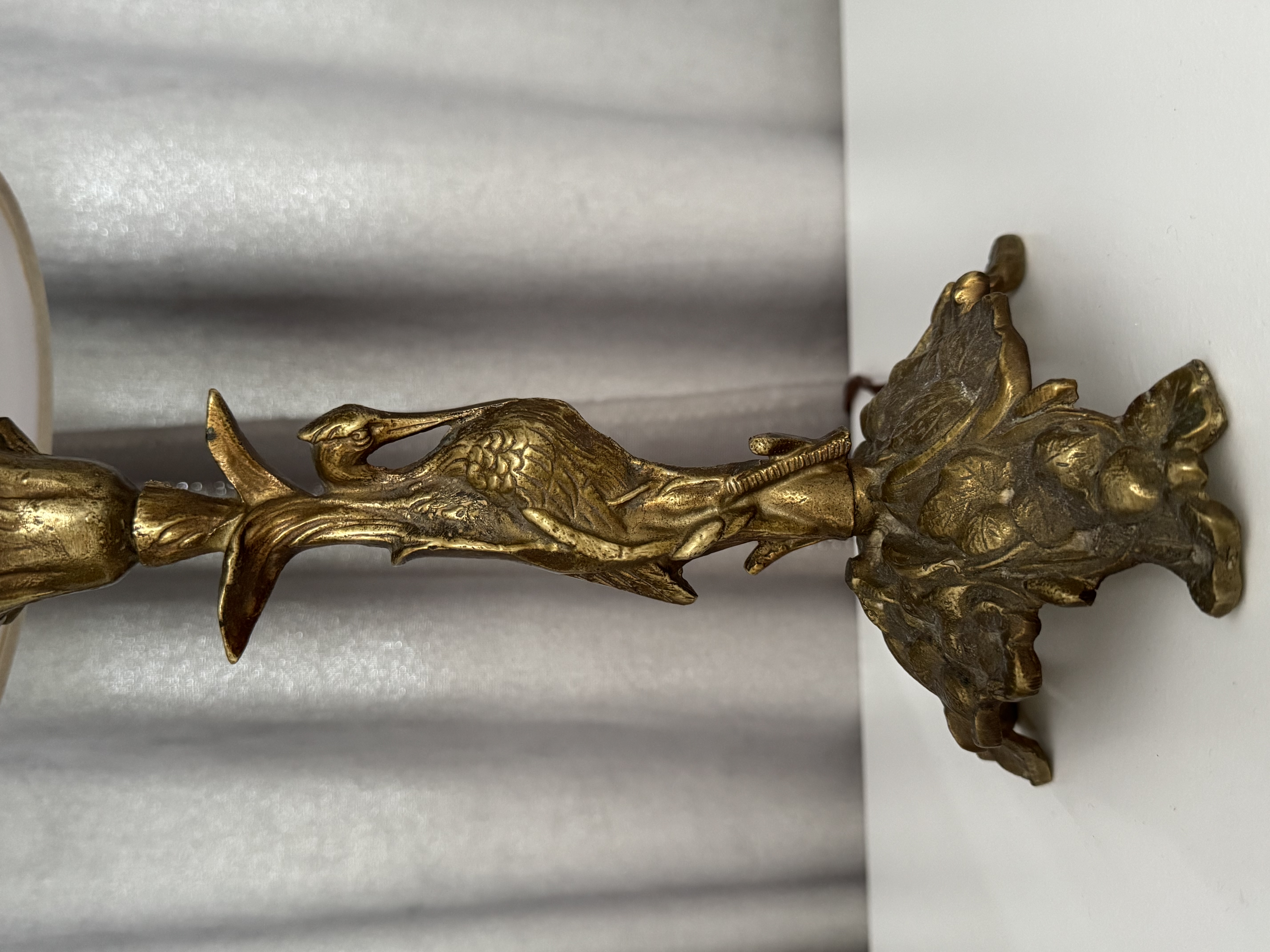 Vintage bronzen tafellampje in de vorm van een kraanvogel.