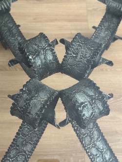 Materiaal: smeedijzer met vrijwel nieuwe glasplaat.