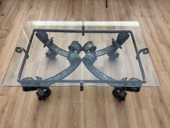 Brutalist vintage salontafel met prachtig smeedijzer onderstel.