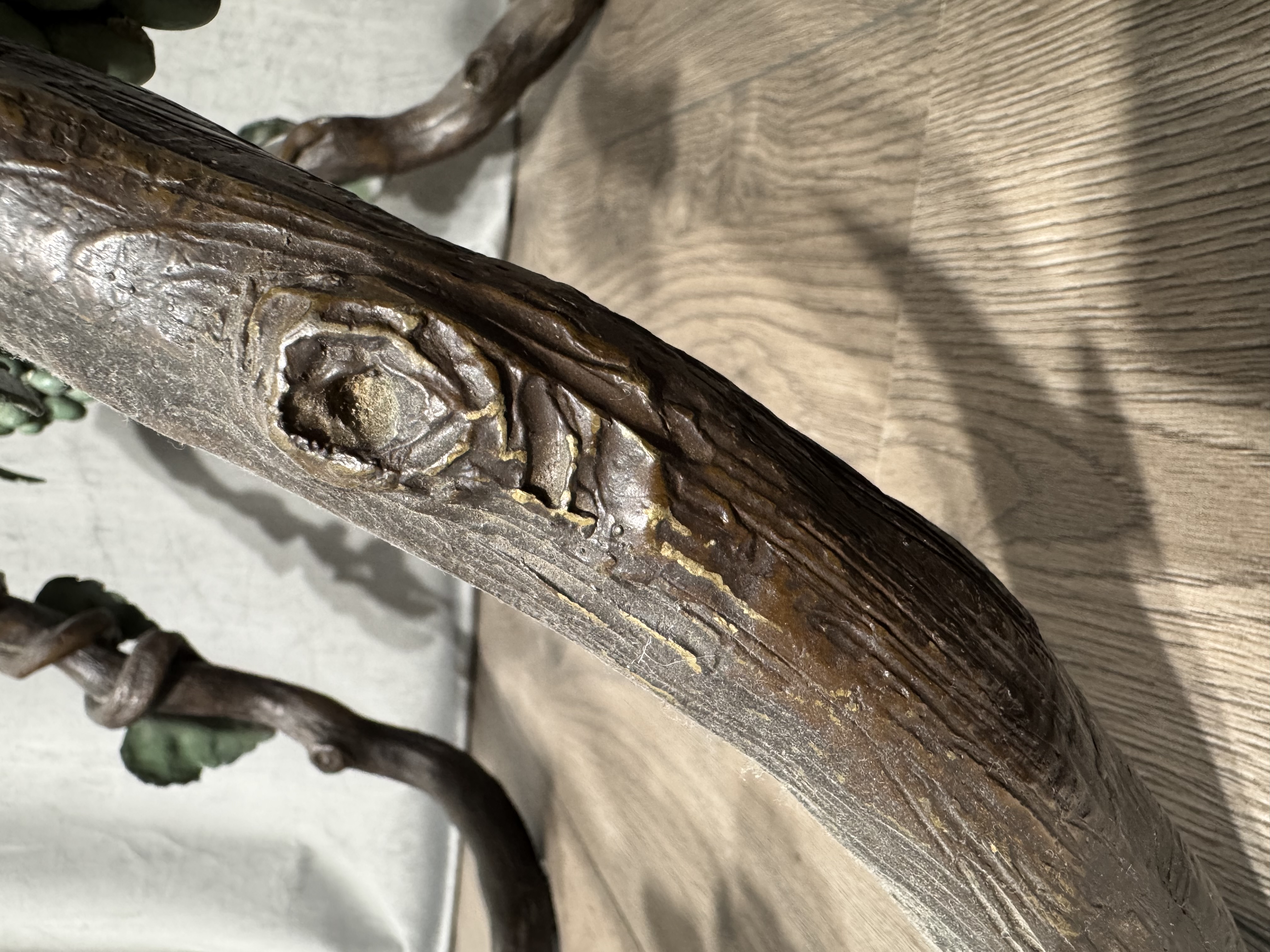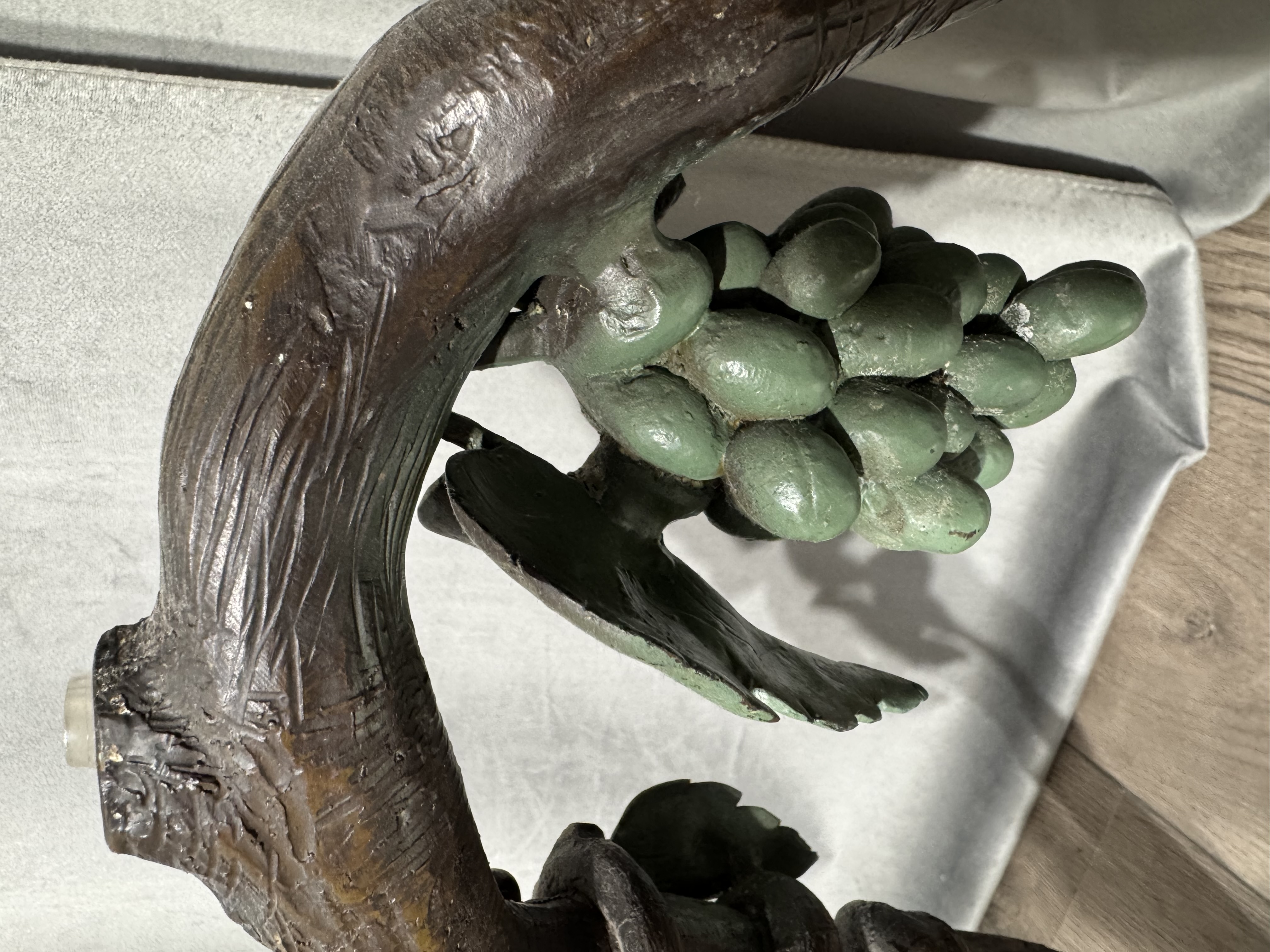 Unieke vintage salontafel met een bronzen onderstel in de vorm van wijnranken.