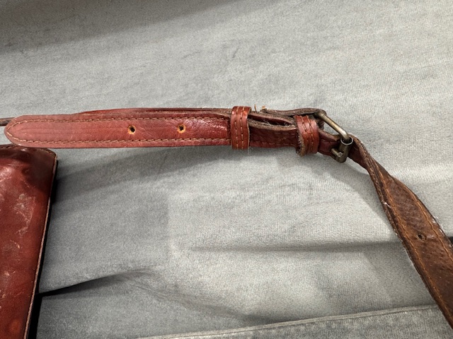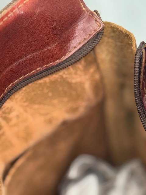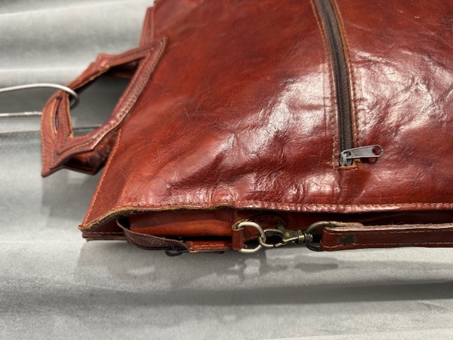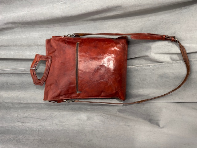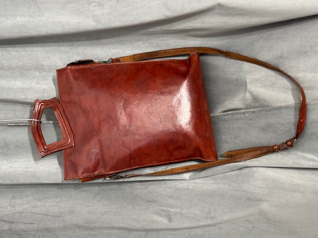 Zeer fraaie vintage lederen damestas. Het betreft een vrij lang maar plat model.